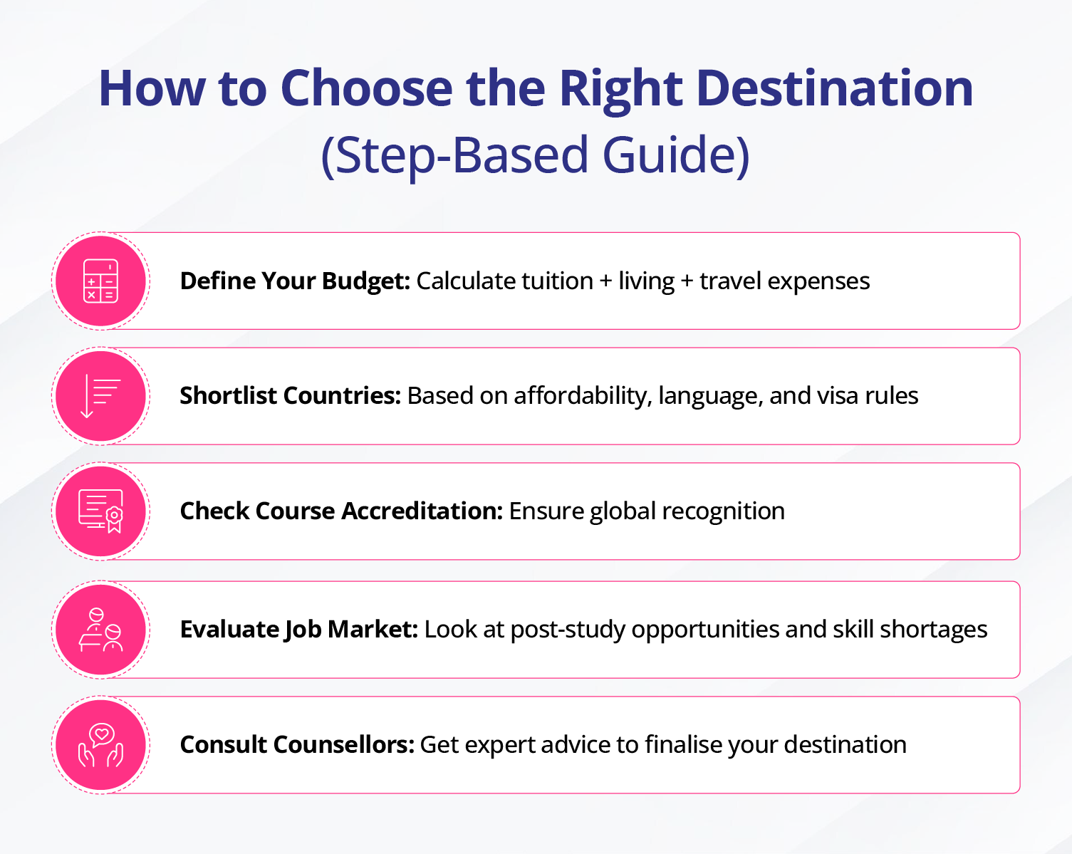 Affordability is only one part of the decision. A smart student evaluates long-term benefits, employability, exposure, and growth. Choose a destination that not only fits your financial plan but also aligns with your career goals. With the right guidance, you can unlock a future that’s globally connected and personally rewarding.