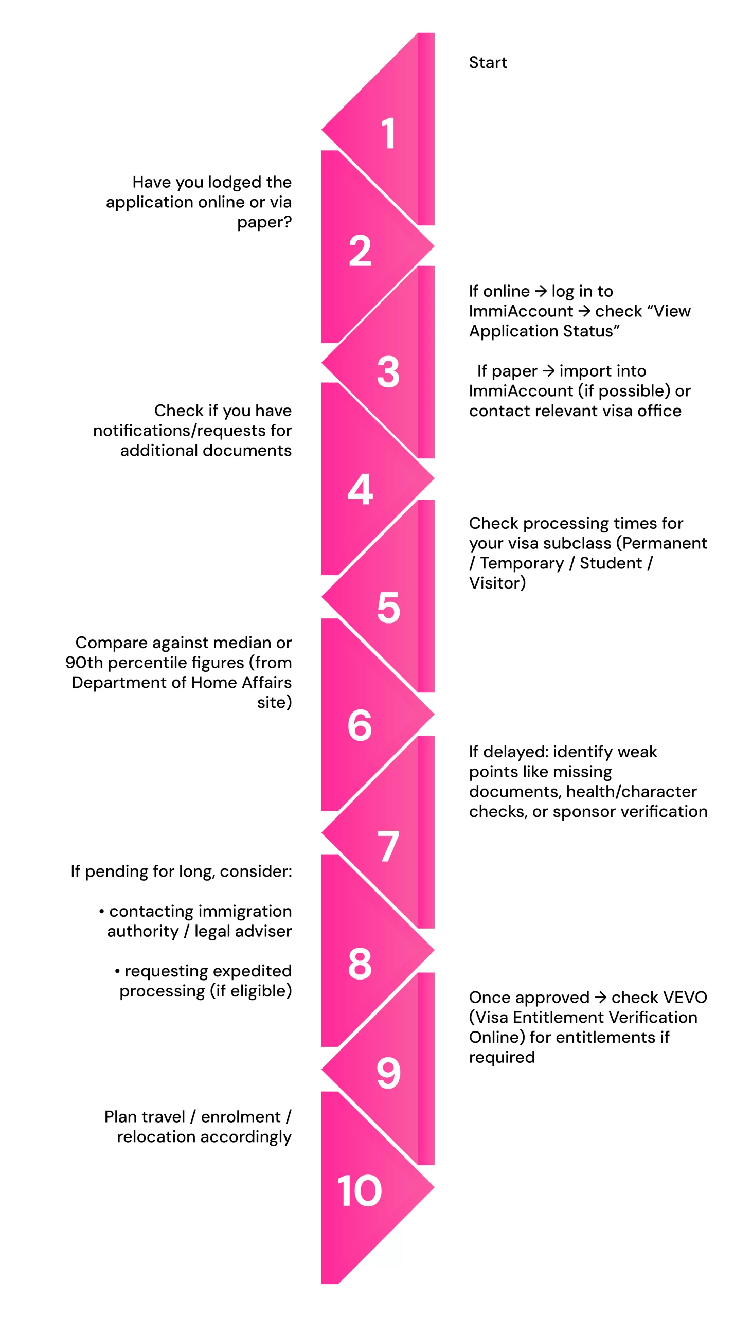 Knowing your visa status is not just about waiting, it’s about being proactive. Here’s a flow-chart-style guide:
