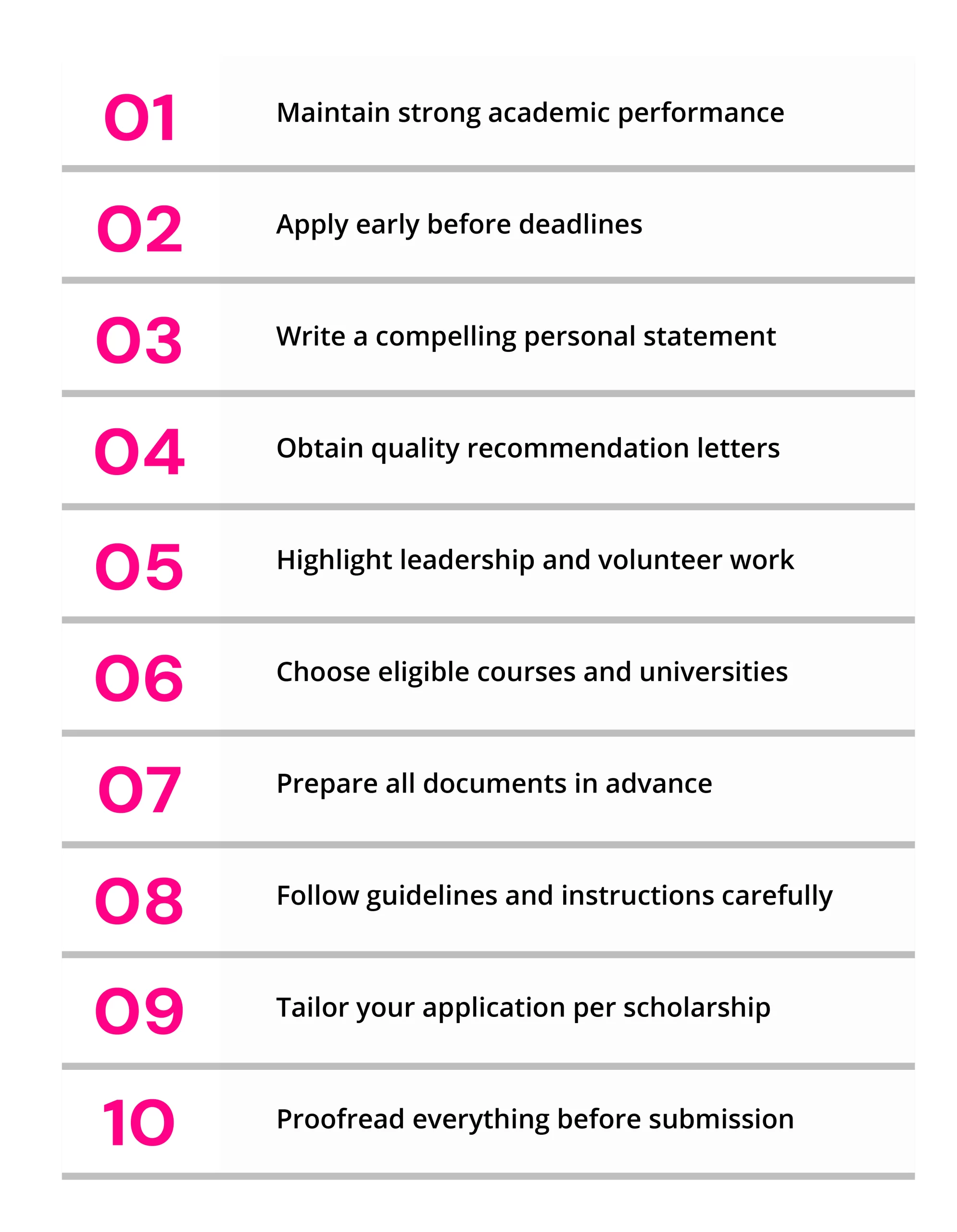 Do note that securing a scholarship is not that easy and to ensure your dream of studying abroad is not shattering due to any reason, here we are giving you some tips that will g