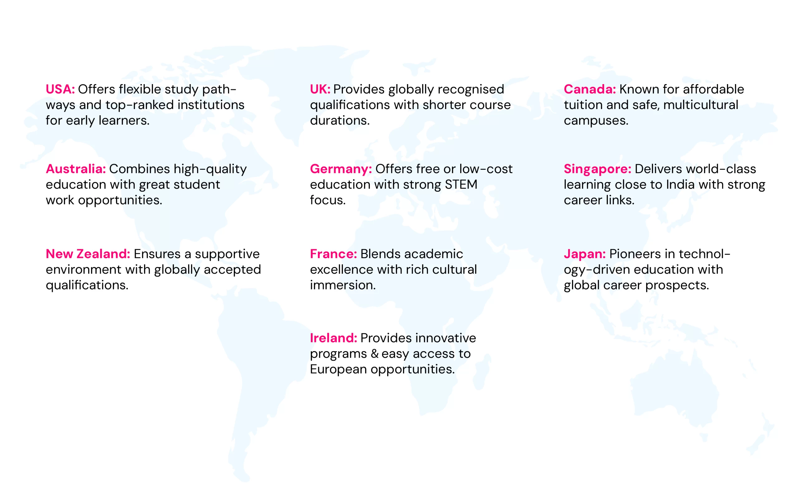 Now that you have seen why you should aim to study abroad after 10th or 12th, here are some top countries around the world that will provide you with the Best Educational Options and post-study work opportunities.