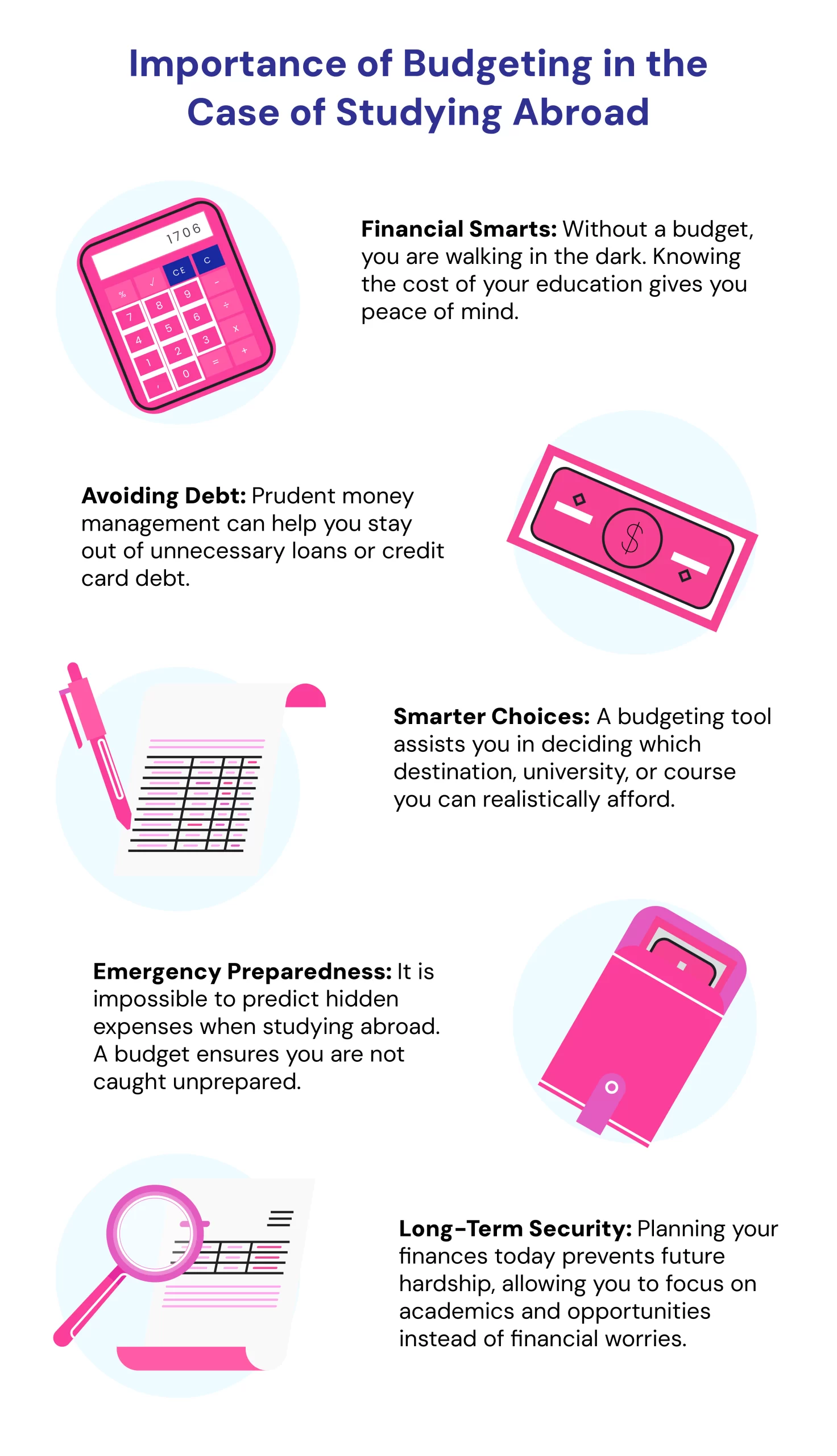 Many students have the desire to pursue studies abroad, but very few actually sit down to calculate the true cost. In most cases, they focus only on tuition fees and overlook other important expenses such as living costs, visa fees, and personal expenditures. The reasons budgeting is important include: