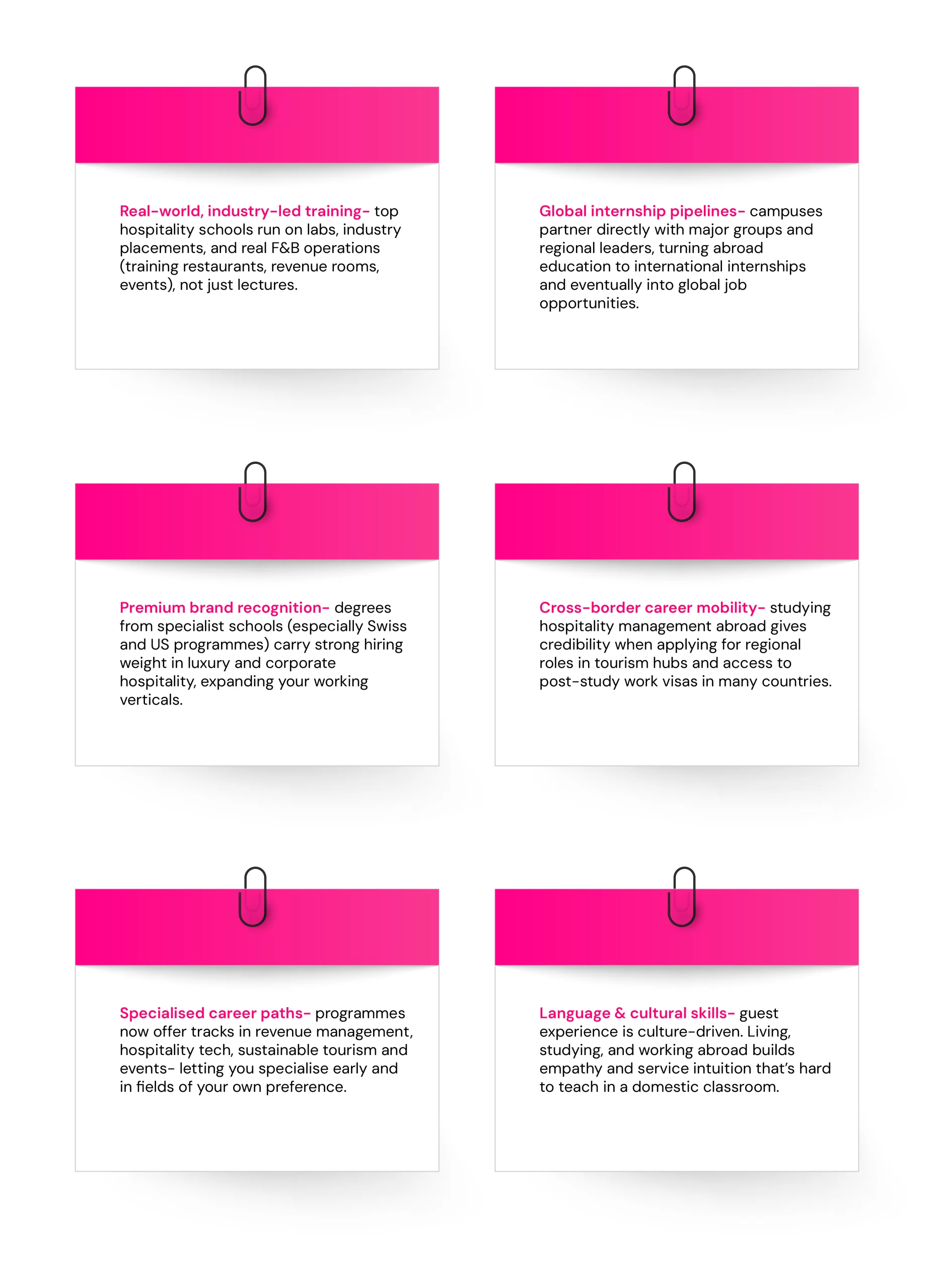 The last nation in the list of top nations to study hospitality management abroad is Australia. Offering high-quality hospitality and tourism programmes with a strong focus on the Asia-Pacific market, the hospitality institutions in Australia specialise in practical training, culinary arts, and evens. It is Australia’s booming tourism industry that provides a wealth of internship and job opportunities, supported by post-study work visas for international graduates. Programmes here are often of hospitality with entrepreneurship, sustainability, and technology, preparing students for diverse roles post-graduation. Though the education cost is slightly higher, but students who are aiming to work in Asia-Pacific market, then Australia is the best nation for them.