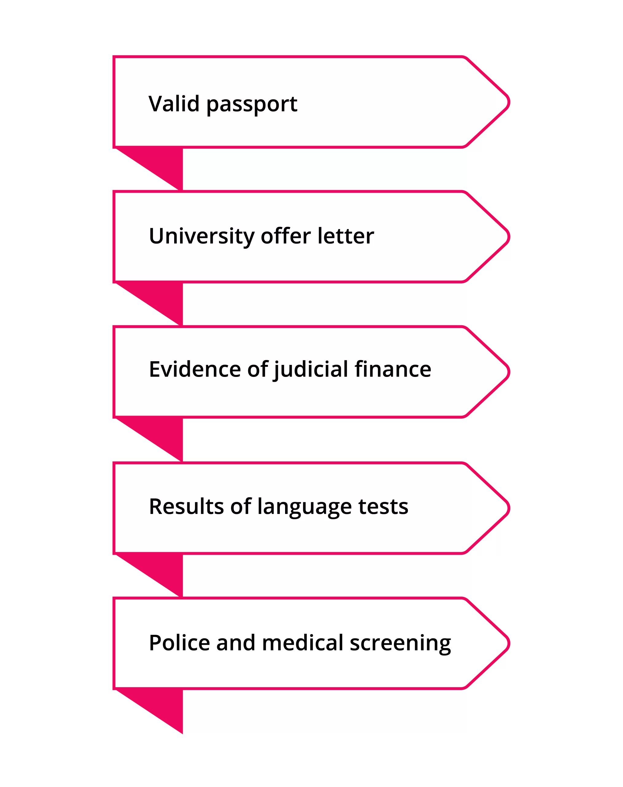 After getting your offer/acceptance letter, you should then Apply for a Student Visa. The requirements also vary depending on: