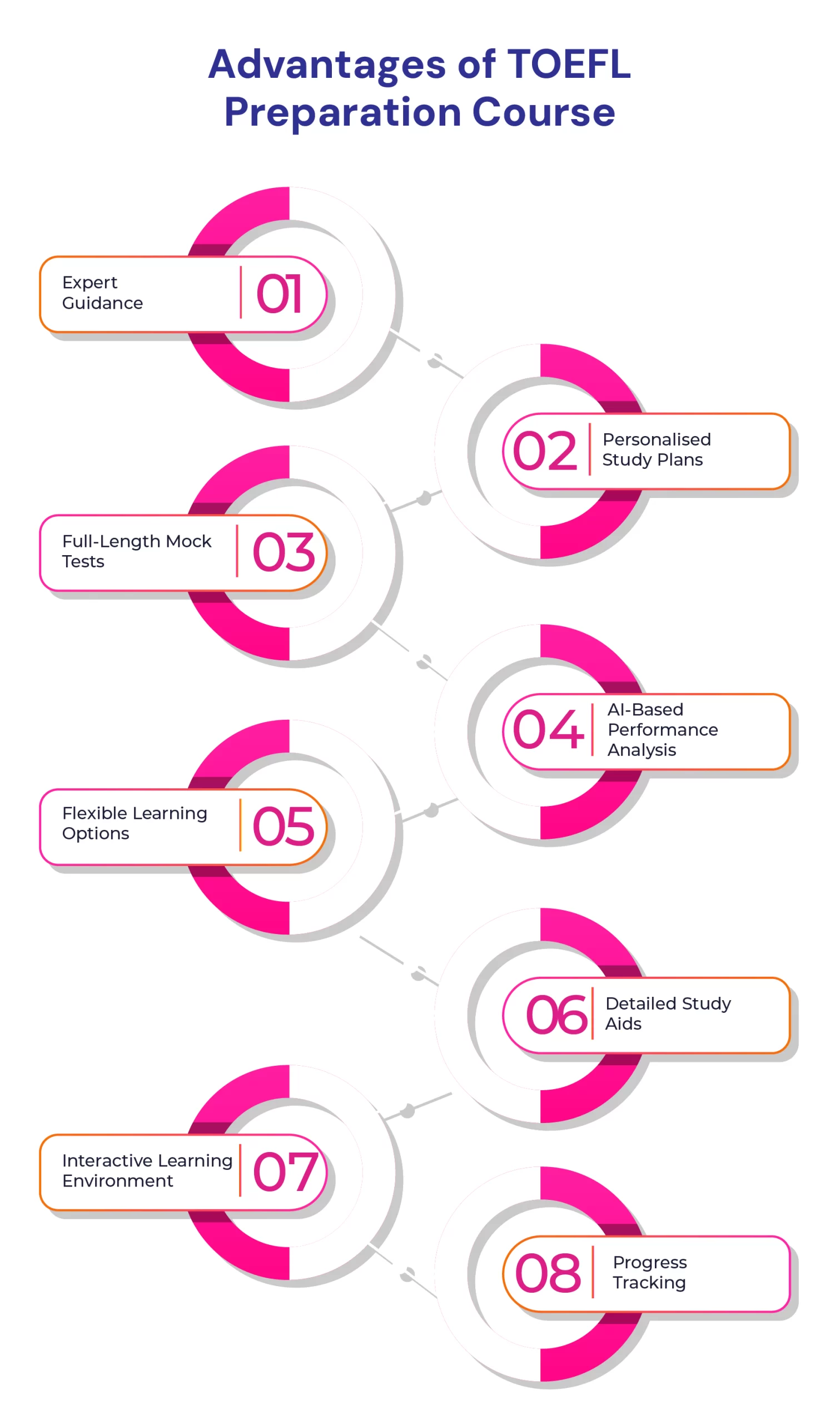 Many students attempt self-study but are unable to manage their time or identify areas of weakness. A TOEFL preparation course provides the necessary structure, guidance, and feedback to improve performance.